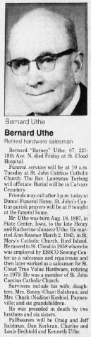 - Leroy Mathew Uthe+ b. 1 Dec 1916, d. 18 Sep 1986