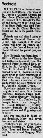 - Florence Magdelena Bechtold b. 30 Nov 1926, d. 2 Feb 2012