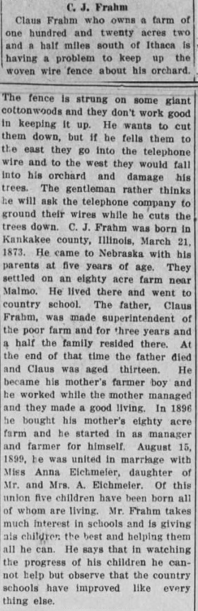 - Charles C. Frahm b. 24 Jul 1858, d. 31 Jan 1944