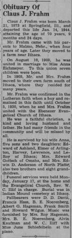 - Harvey August Frahm b. 12 Dec 1905, d. 15 Dec 1976