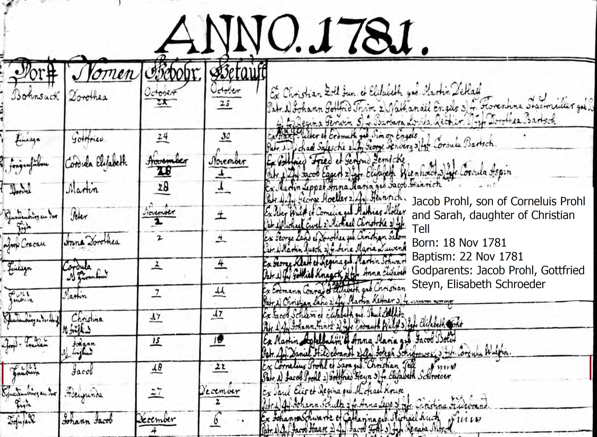 - Jacob Proell+ b. 18 Nov 1781, d. 11 Mar 1831