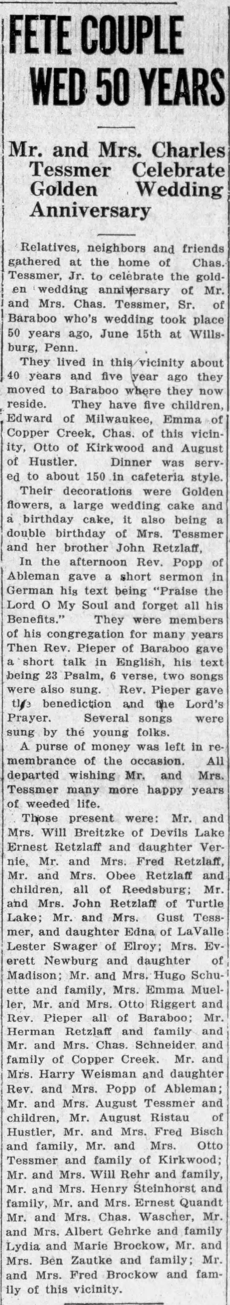 - [S244] U.S. Federal Census 1910 U.S. Federal Census, by Ancestry.com, Year: 1910; Census Place: Reedsburg Ward 2, Sauk, Wisconsin; Roll: T624_1736; Page: 13A; Enumeration District: 0124; FHL microfilm: 1375749.