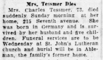- Anna S. Stahnke+ b. 29 Jul 1872, d. 24 Dec 1930