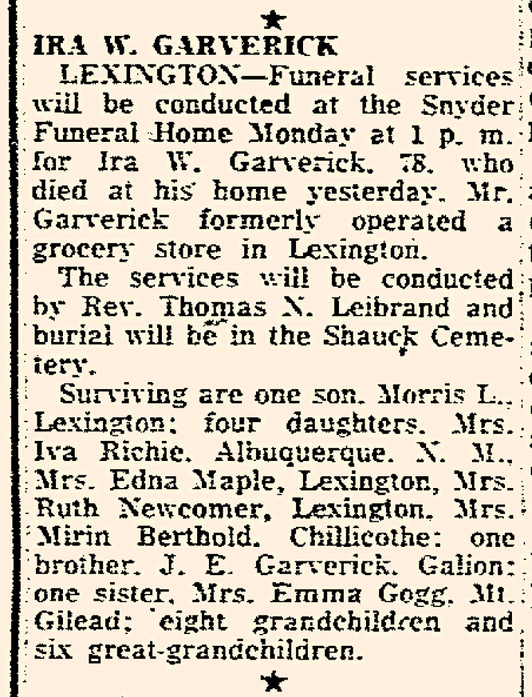 - Ivah Dale Garverick b. 28 Sep 1899, d. 6 Sep 1988