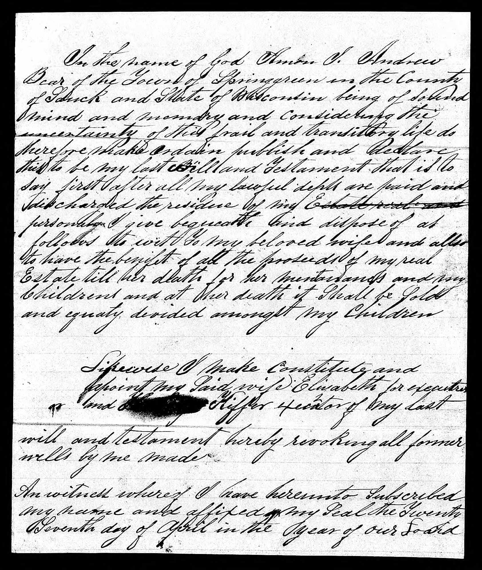 - Angeline W. Bear+ b. 4 Aug 1839, d. 15 Jun 1929