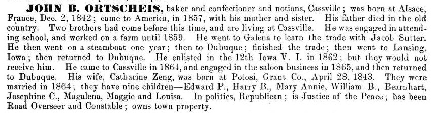 - John Baptists Ortscheid+ b. 2 Dec 1842, d. 7 Jun 1931