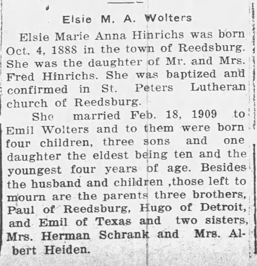 Children of Elsie Marie Anna Hinrichs and Emil Henry Wolters