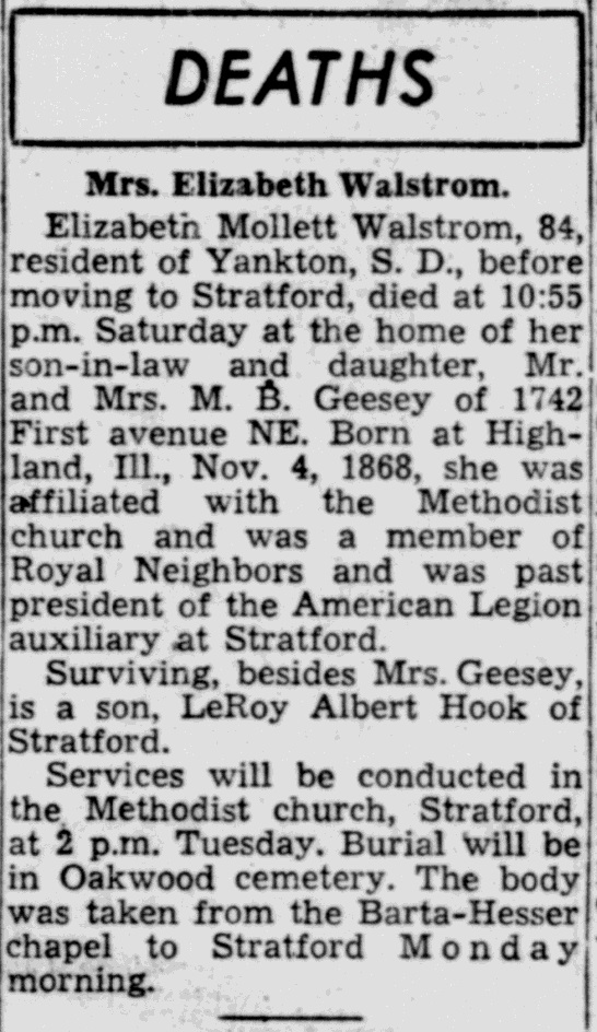 - Anna E. Walstrom b. 6 Jul 1891, d. 4 Aug 1950