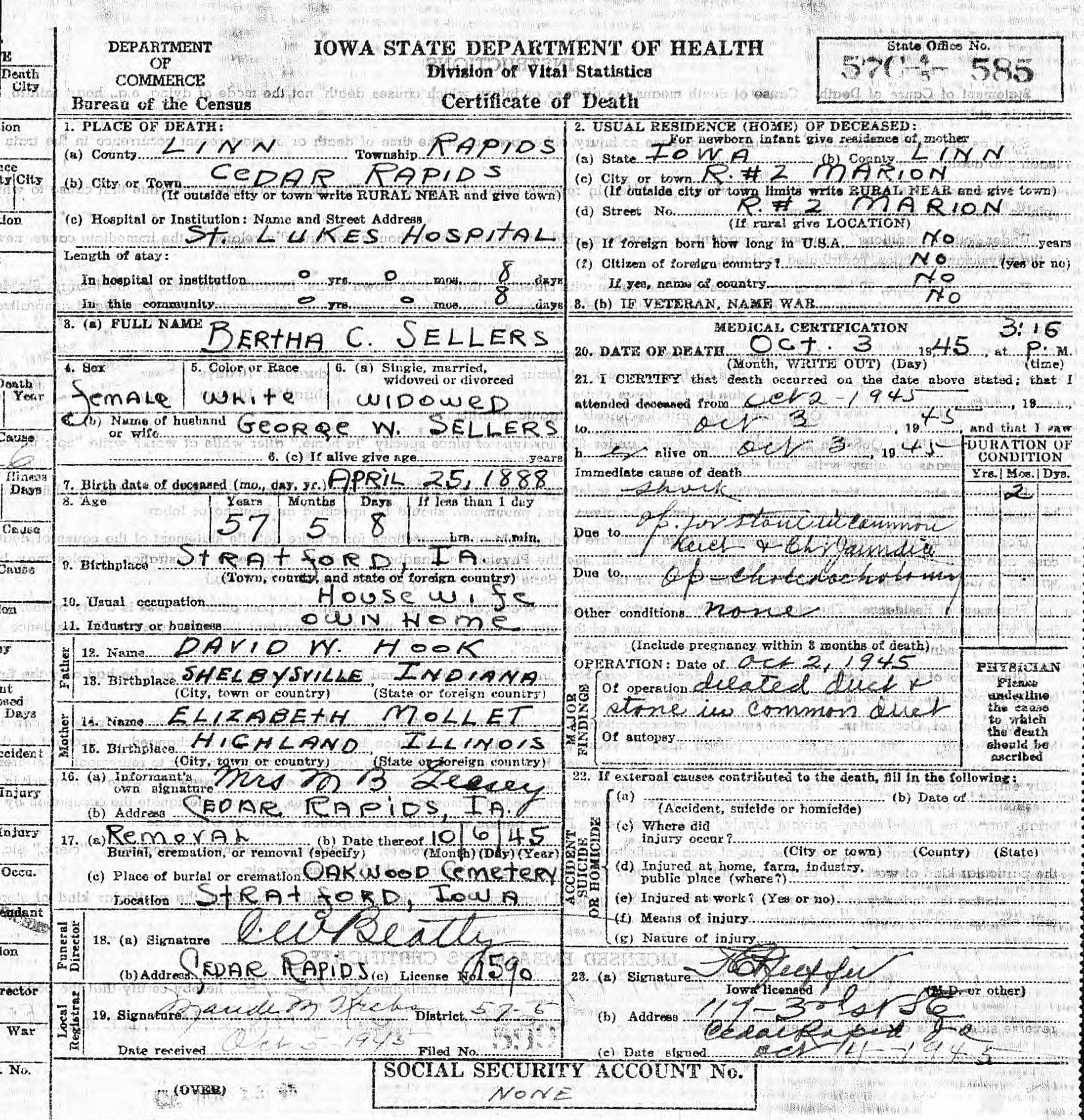 - Bertha Canzadia Hook+ b. 25 Apr 1888, d. 3 Oct 1945