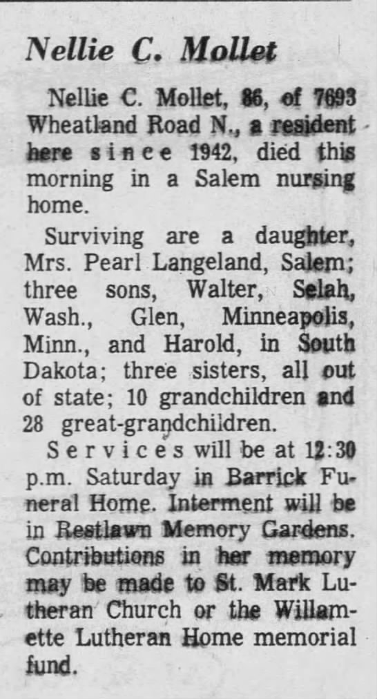 - Harold D. Mollet+ b. 20 Jan 1909, d. 9 Jan 1972