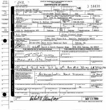 - Winnie Jean Mollet+ b. 31 Jan 1932, d. 4 Sep 2019