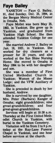 - Faye Glendline Mollet+ b. 25 May 1903, d. 25 Dec 1994