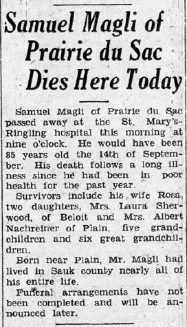 - Mary L. Magli b. Dec 1885, d. 30 Oct 1964