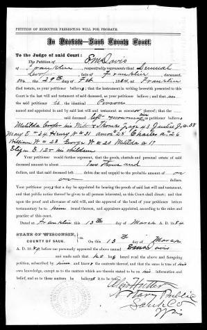 - [S247] U.S. Federal Census 1870 U.S. Federal Census, by Ancestry.com, Year: 1870; Census Place: Honey Creek, Sauk, Wisconsin; Roll: M593_1739; Page: 119A; Image: 243; Family History Library Film: 553238.