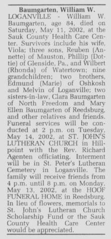 - [S180] Wisconsin Sauk Co Cemetery Records Vol 6, page 38.