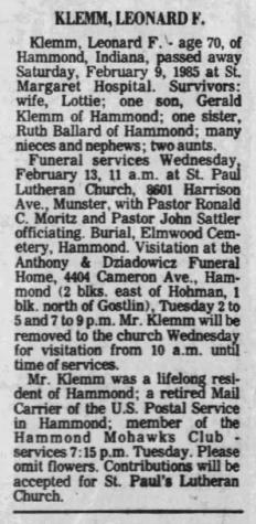 Child of Leonard Fred Klemm and Charlotte Helen Bojda