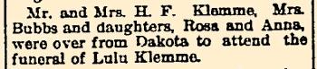 | Father* | August Klemme b. 27 Apr 1856, d. 13 Feb 1940 |