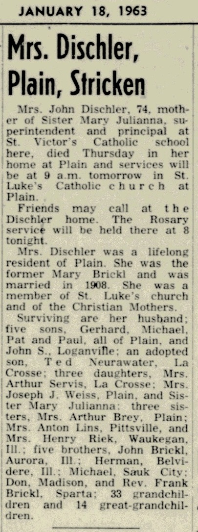 Children of John Baptist Dischler and Mary Katherine Brickl
