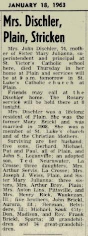 - Bernadine Dischler d. 15 Jan 1926