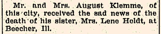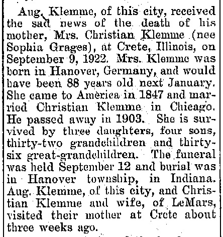 - August Klemme+ b. 27 Apr 1856, d. 13 Feb 1940