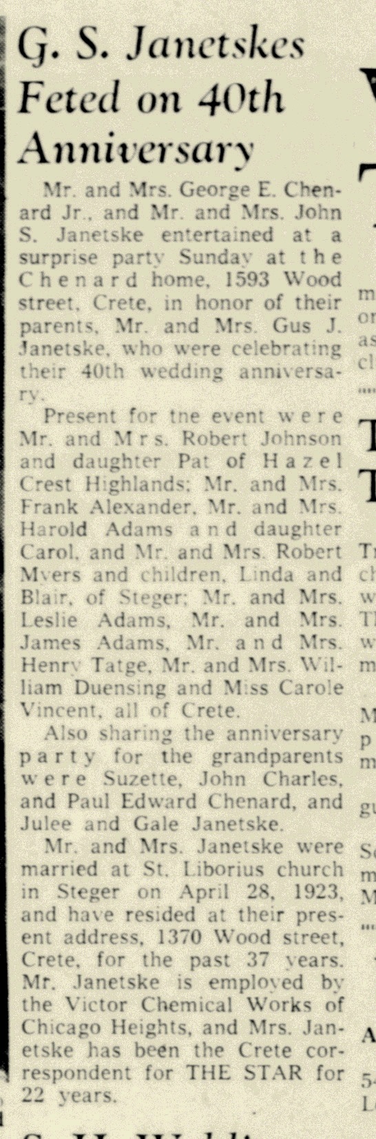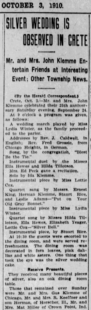 - [S245] U.S. Federal Census 1900 U.S. Federal Census, by Ancestry.com, ED101. Dwelling 234.Year: 1900; Census Place: Crete, Will, Illinois; Roll: T623_353 Page: 13B; Enumeration District: 101.
