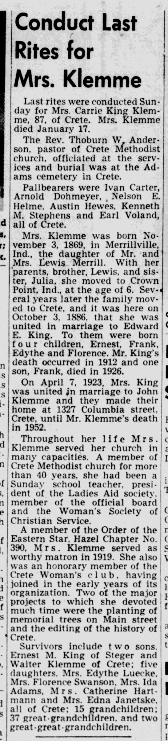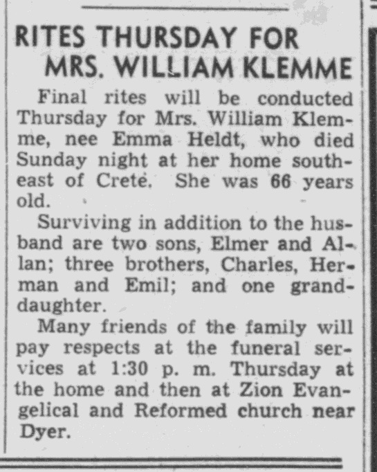 - Elmer W. Klemme+ b. 27 Feb 1902, d. 17 Oct 1965