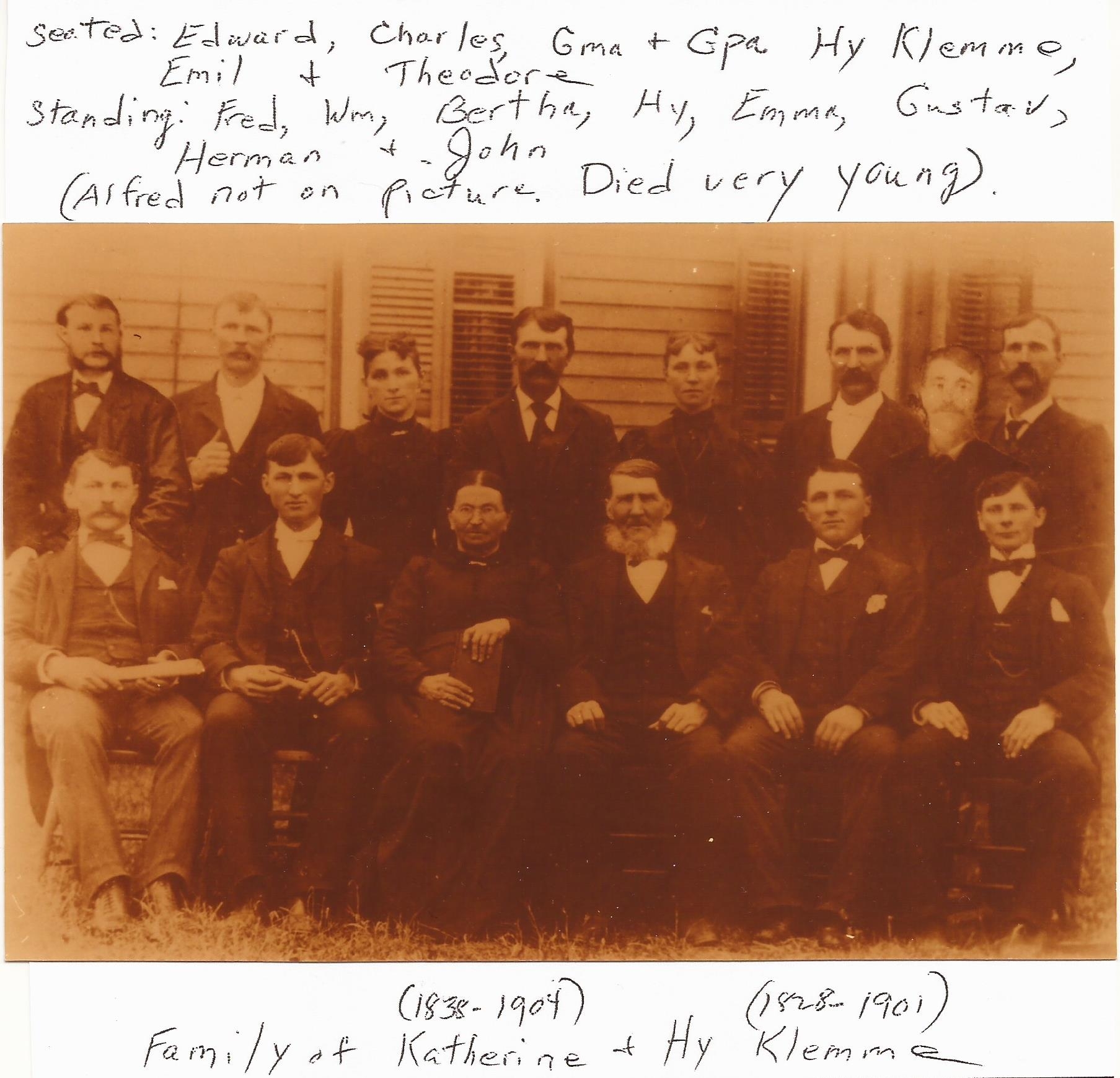 - Christian Heinrich Friedrich Wilhelm Klemme b. 19 Sep 1835, d. 9 Mar 1917