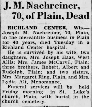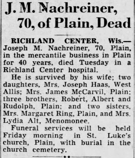 - Joseph Lewis Nachreiner b. 10 Nov 1923, d. 10 Nov 1923