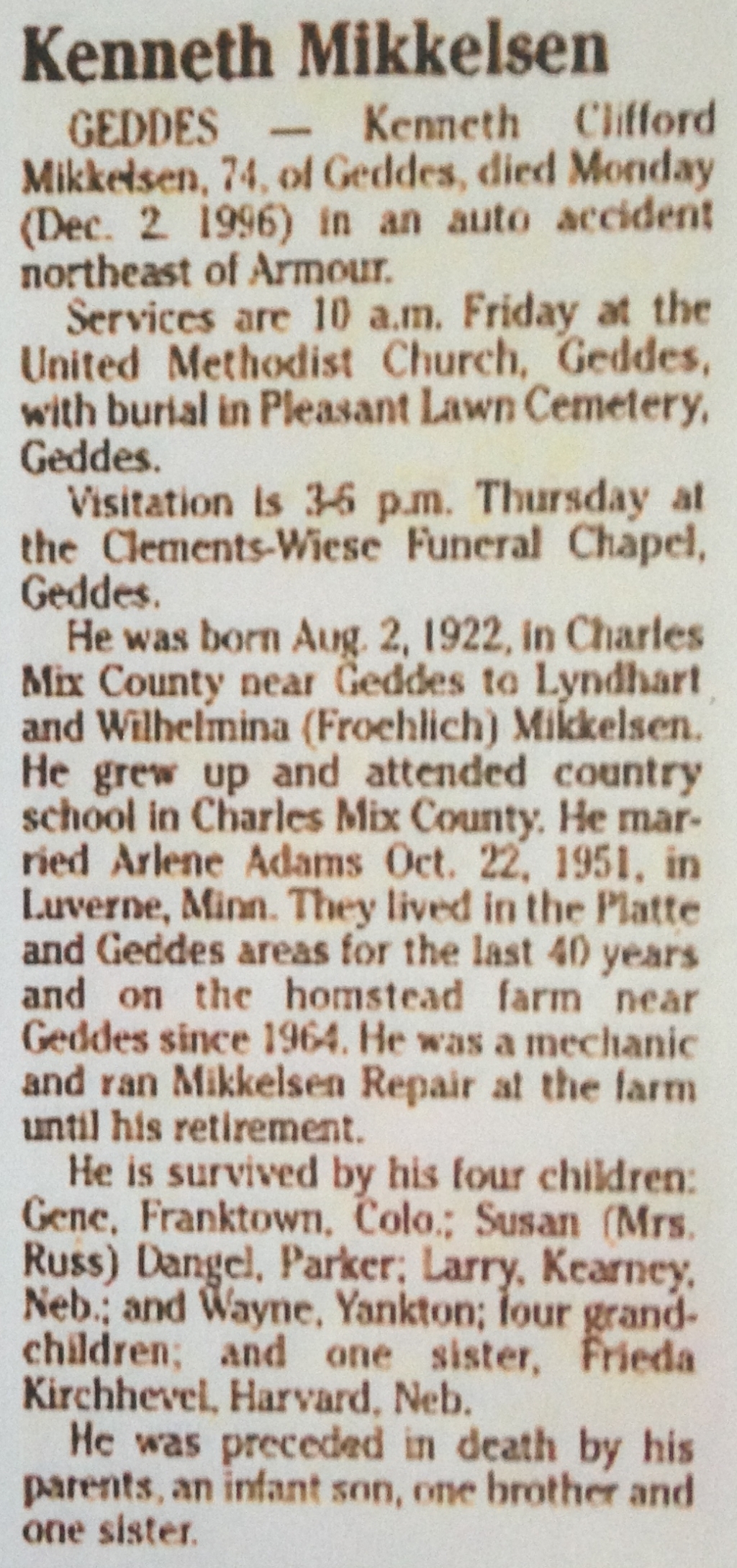 Child of Arlene Margaret Adams and Kenneth Clifford Mikkelsen