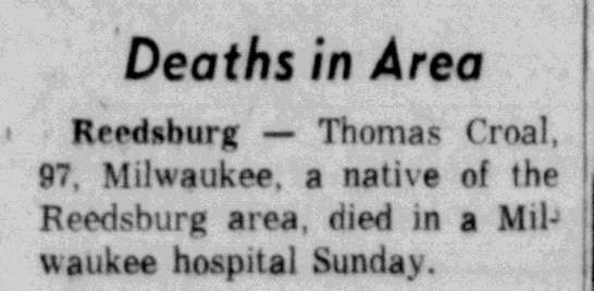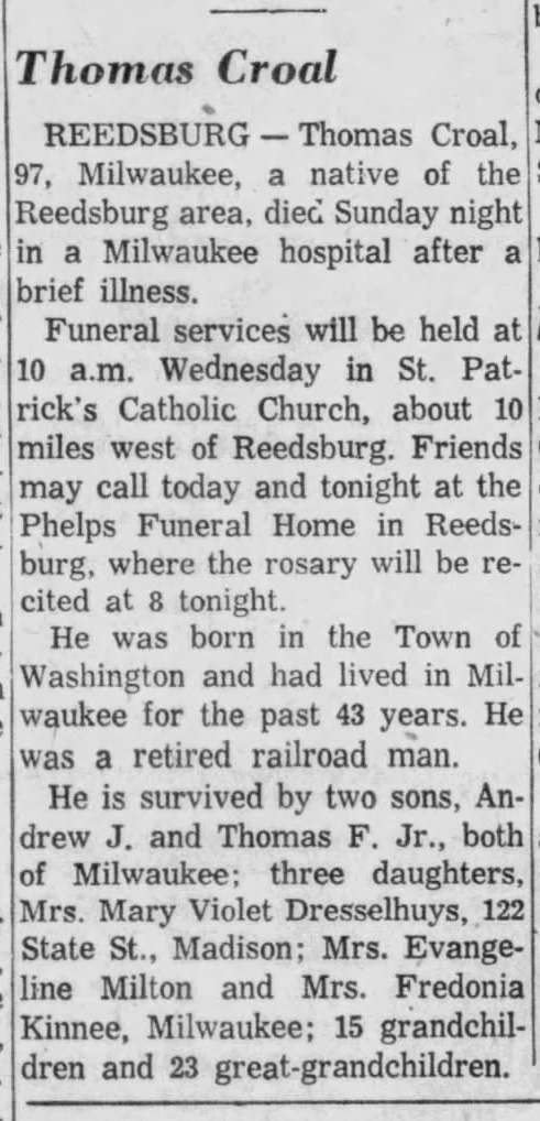 - Thomas Francis Croal Jr.+ b. 28 Sep 1901, d. 22 Nov 1980