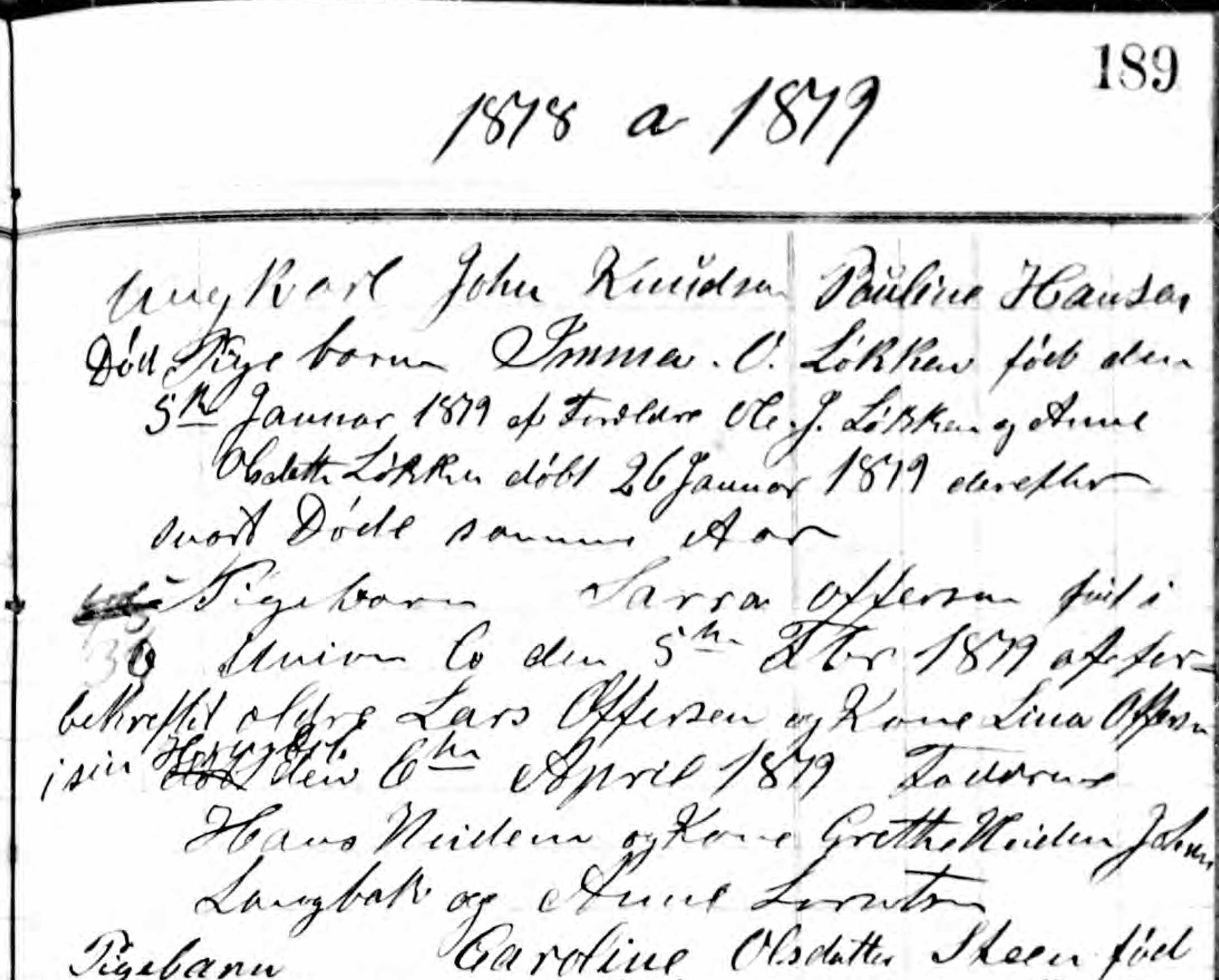Child of Anne Olsdatter Krigsbakken and Ole Jonsen Lykken