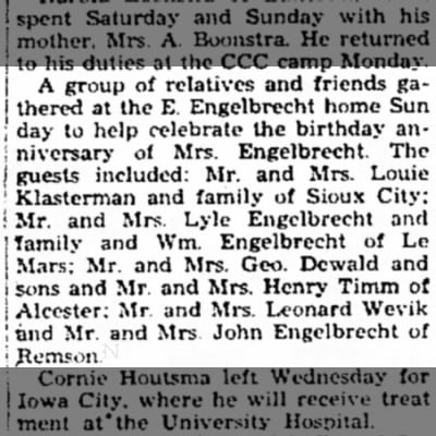 - [S373] U.S. Federal Census 1940 U.S. Federal Census, by Ancestry.com, Year: 1940; Census Place: Glenwood, Clay, South Dakota; Roll: T627_3851; Page: 2A; Enumeration District: 14-4.