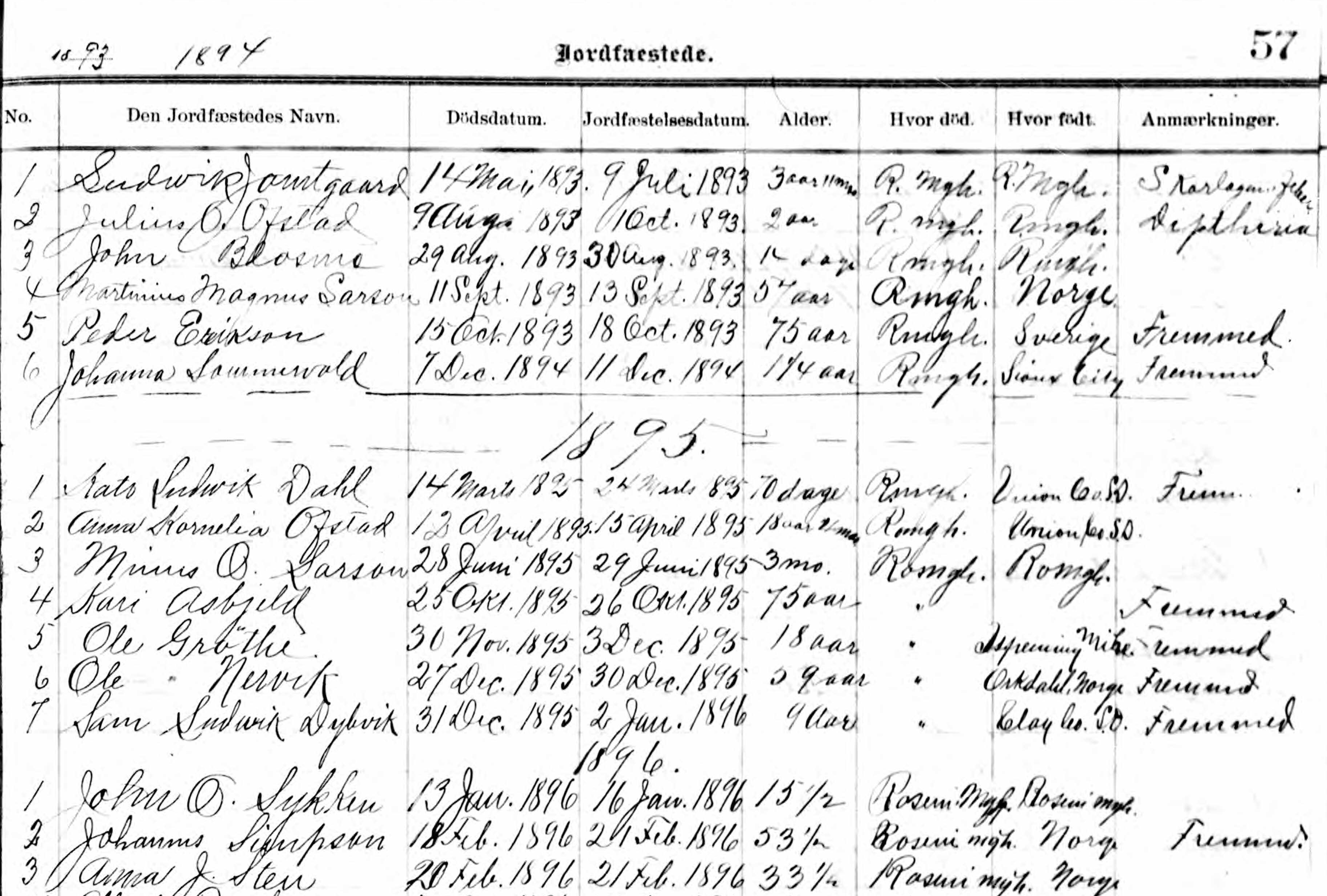 - Ella Larson b. 21 Jun 1893, d. 19 Dec 1906