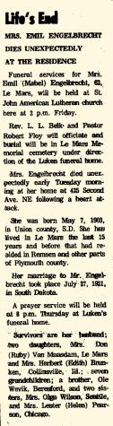 - Levern Orval Abraham b. 7 Nov 1916, d. 15 Feb 1993