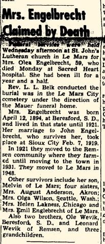 - Olea Wevik+ b. 12 Apr 1894, d. 7 Sep 1953