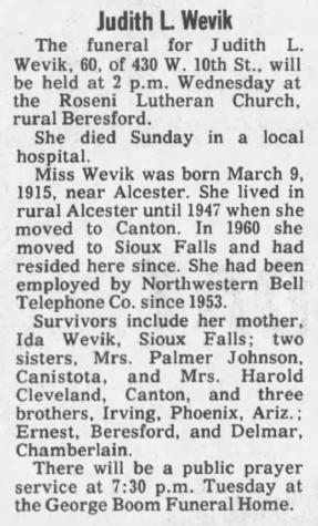 | Father* | Alfred O. Wevik b. 24 Jul 1887, d. 17 May 1948 |