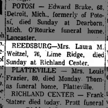 - Peter J. Weitzel b. Jul 1899, d. 5 Oct 1957