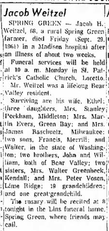 - Lyle Joseph Weitzel b. 1923, d. 1929