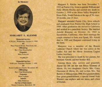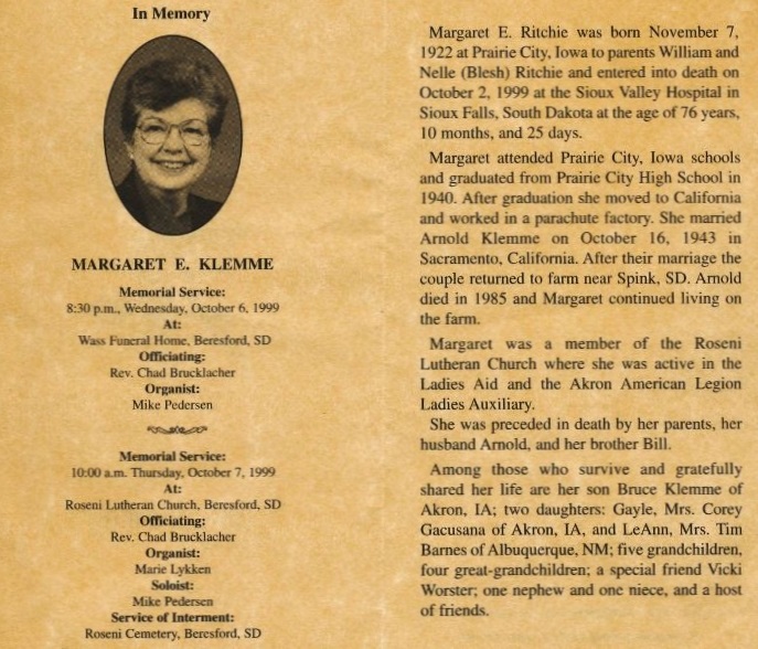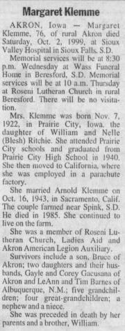 Child of Margaret Elizabeth Ritchie and Arnold Luverne Klemme