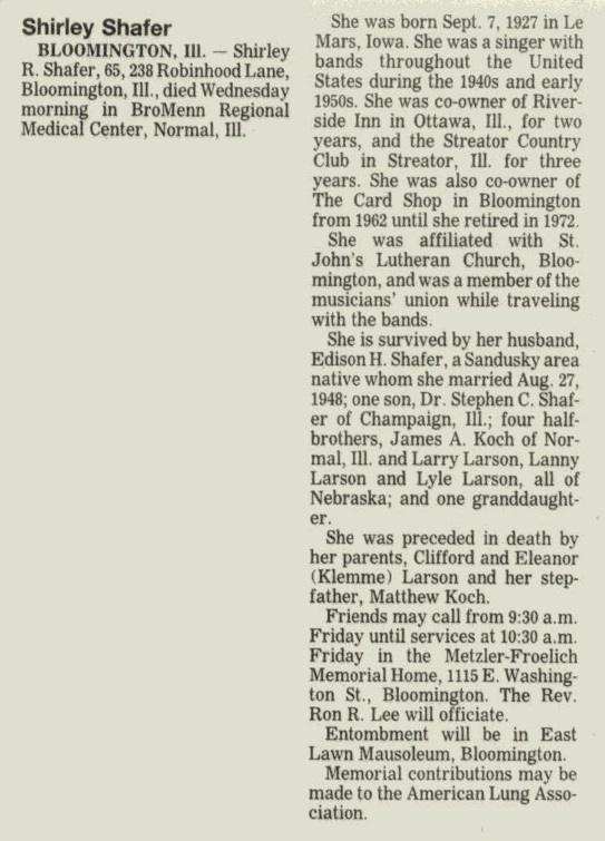 | Father* | Harry A. Schroeder b. 1 Dec 1900, d. 6 Oct 1947 |