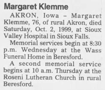 | Father* | Arnold Luverne Klemme b. 21 Oct 1919, d. 5 Mar 1985 |