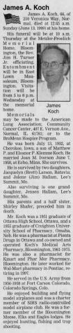 - James August Koch+ b. 13 Jul 1932, d. 13 Jun 1999