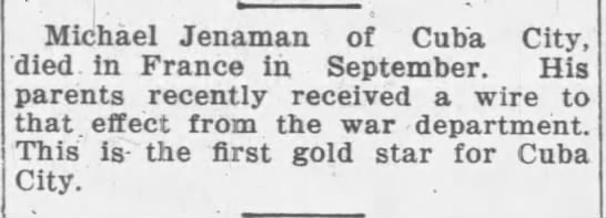 - Michael Jenaman b. 15 Oct 1887, d. Sep 1918