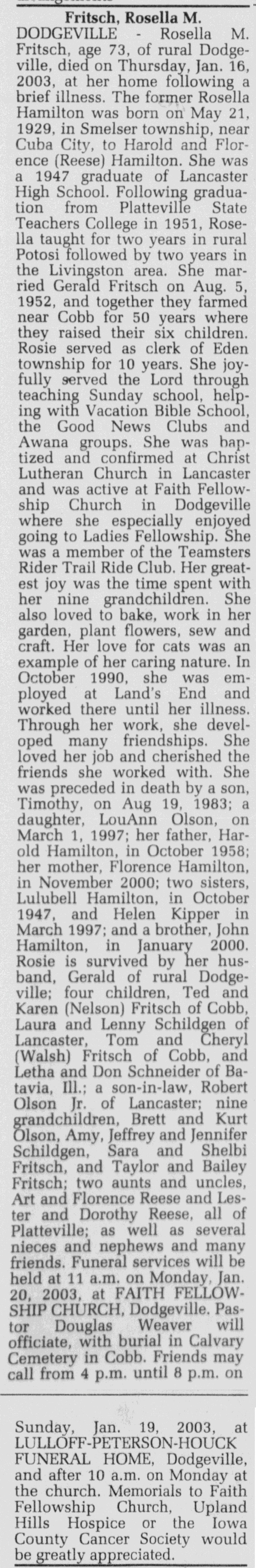 Children of Rosella May Hamilton and Gerald Elden Fritsch