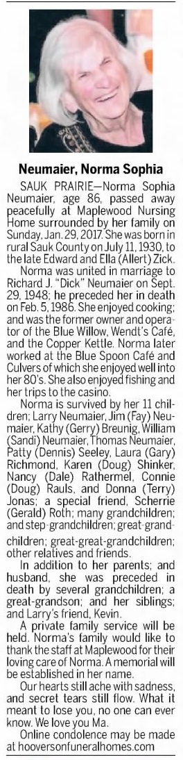 - [S250] U.S. Federal Census 1930 U.S. Federal Census, by Ancestry.com, Year: 1930; Census Place: Honey Creek, Sauk, Wisconsin; Roll: 2609; Page: 5A; Enumeration District: 16; Image: 169.0.