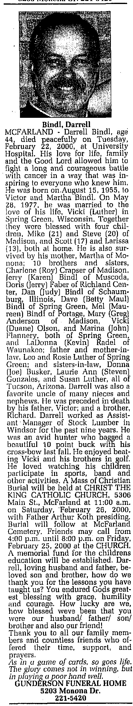 - Scott Bindl b. c 1983, d. 22 May 2004