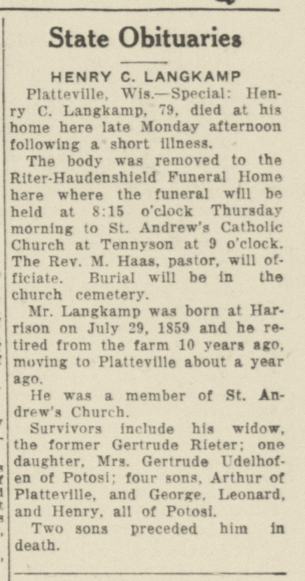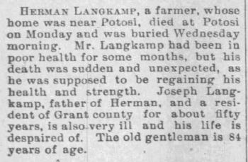 - William Joseph Langkamp b. 27 Oct 1894, d. 30 Nov 1938