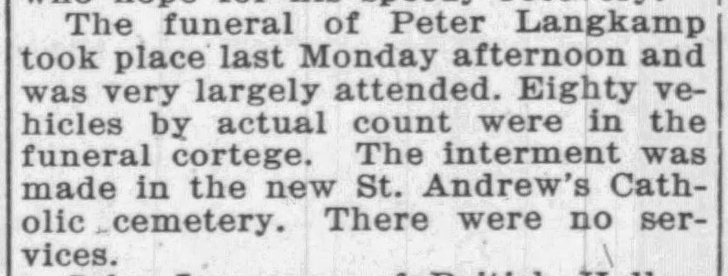 - Peter Langkamp b. 7 Dec 1906, d. b 1910