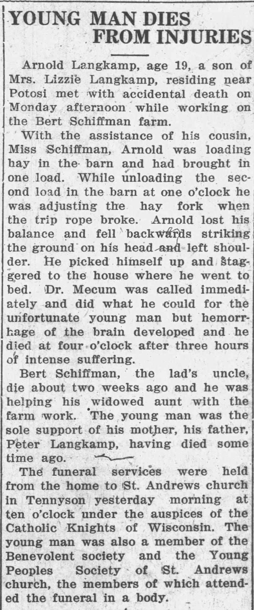 - Arnold Joseph Langkamp b. 10 Aug 1900, d. 5 Apr 1920
