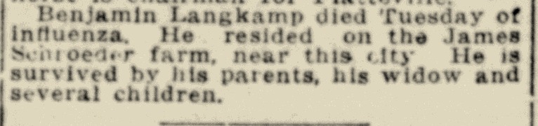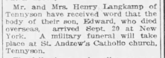 - Edward J. Langkamp b. 20 May 1896, d. 31 Jan 1919